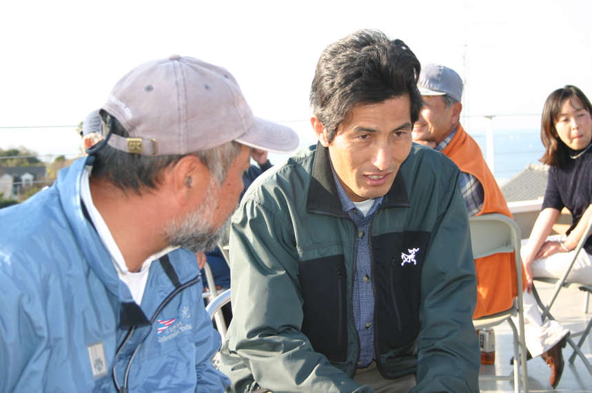 オープンパーティーの間だにマストトップまで登ってかえってきた日高ご主人